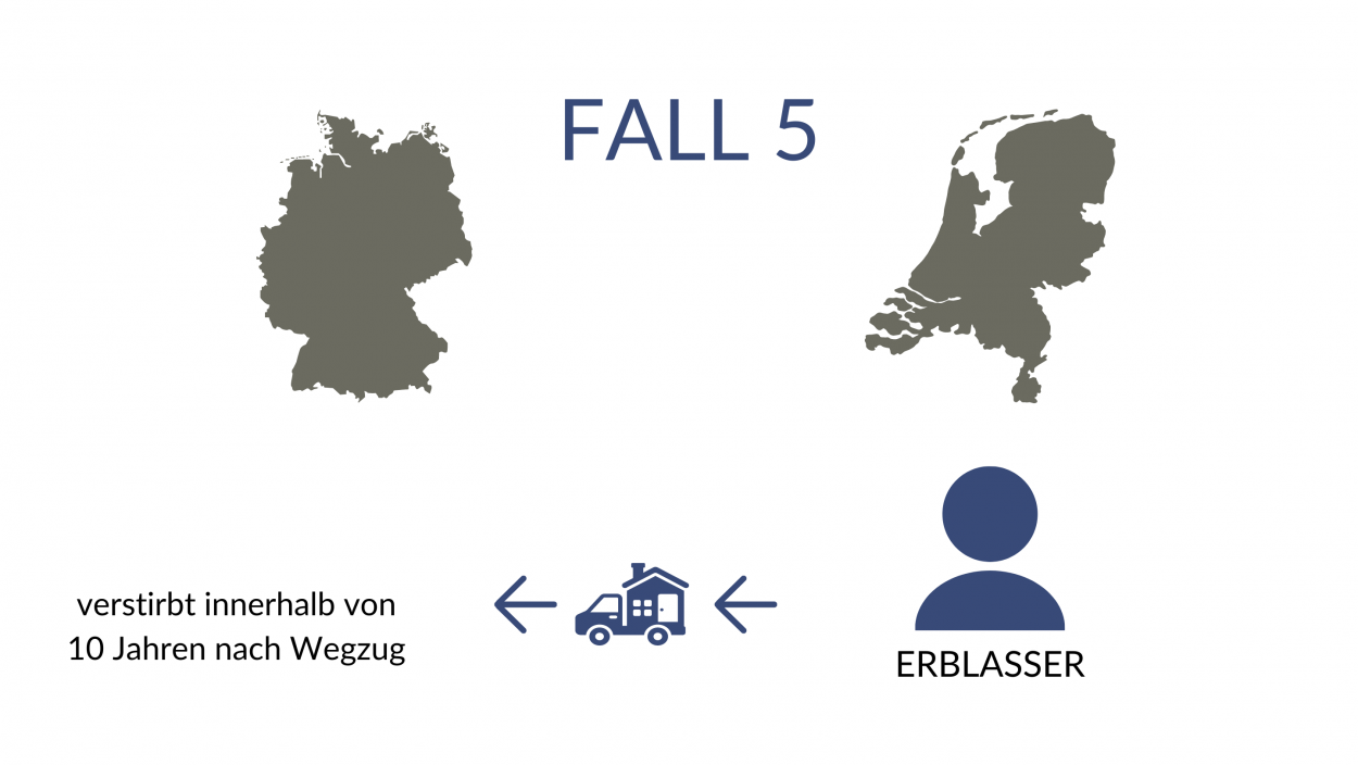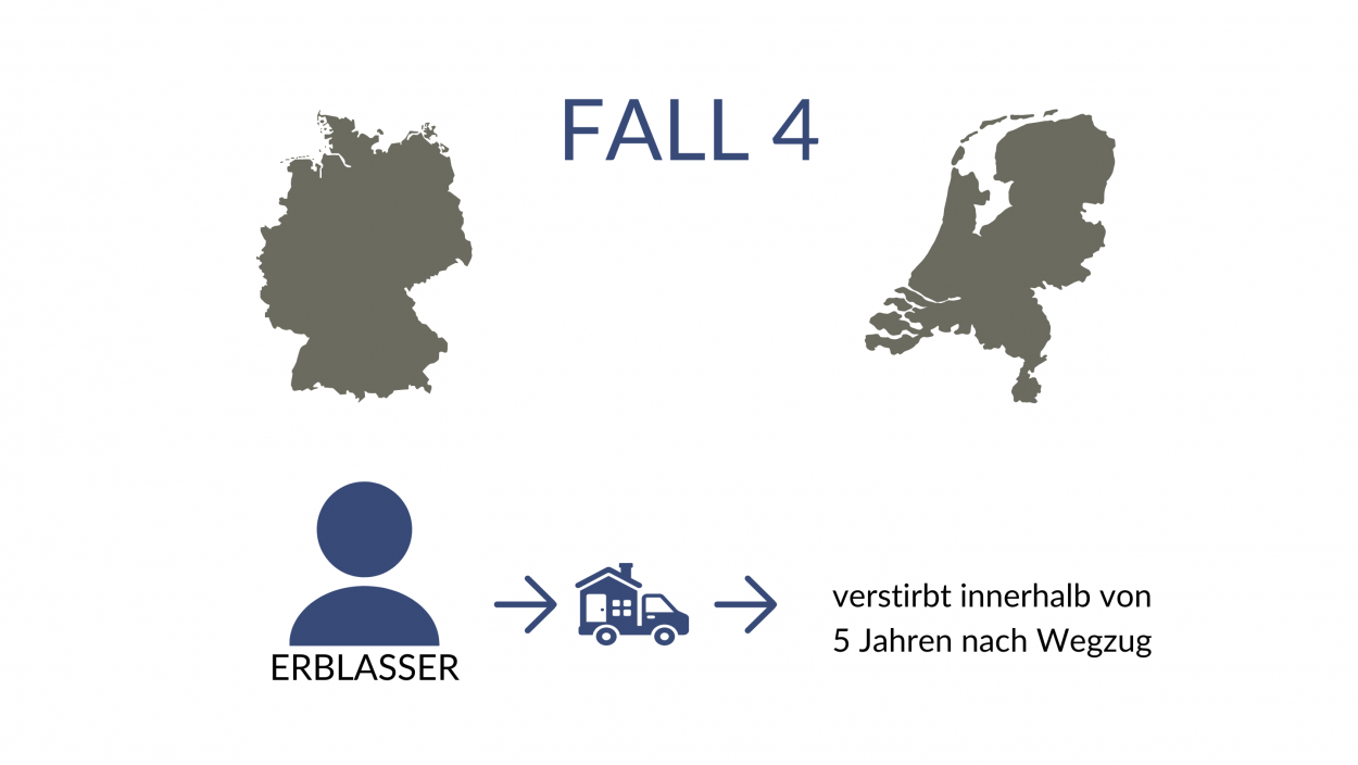 In diesem Fall zieht der bislang in Deutschland lebende Erblasser in die Niederlande um und verstirbt dort innerhalb von fünf Jahren nach dem Umzug.